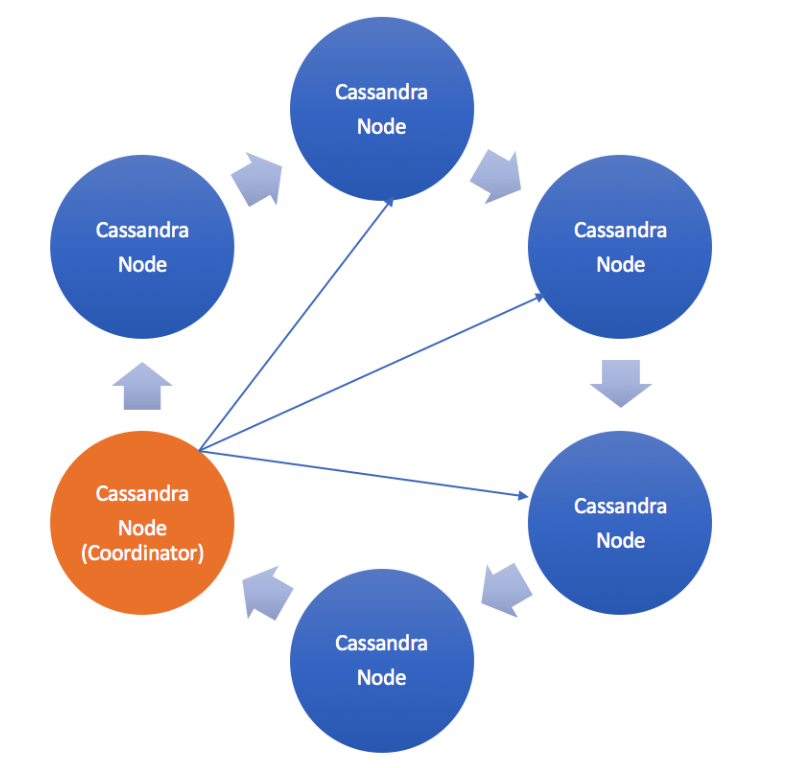 - Cassandra is masterless a client can connect with any node in a cluster. Clients can interface with a Cassandra node using either a thrift protocol or using CQL. In the picture above the client has connected to Node 4. The node that a client connects to is designated as the coordinator, also illustrated in the diagram. The coordinators is responsible for satisfying the clients request. The consistency level determines the number of nodes that the coordinator needs to hear from in order to notify the client of a successful mutation. All inter-node requests are sent through a messaging service and in an asynchronous manner. Based on the partition key and the replication strategy used the coordinator forwards the mutation to all applicable nodes. In our example it is assumed that nodes 1,2 and 3 are the applicable nodes where node 1 is the first replica and nodes two and three are subsequent replicas. The coordinator will wait for a response from the appropriate number of nodes required to satisfy the consistency level. QUORUM is a commonly used consistency level which refers to a majority of the nodes.QUORUM can be calculated using the formula (n/2 +1) where n is the replication factor.